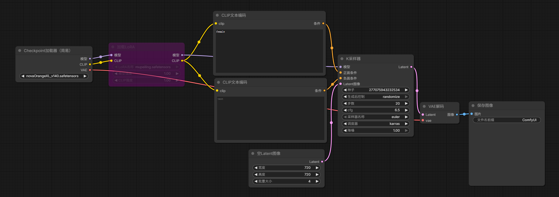 一般流程就是: Checkpoint / Unet -> LoRA Loader -> K采样器